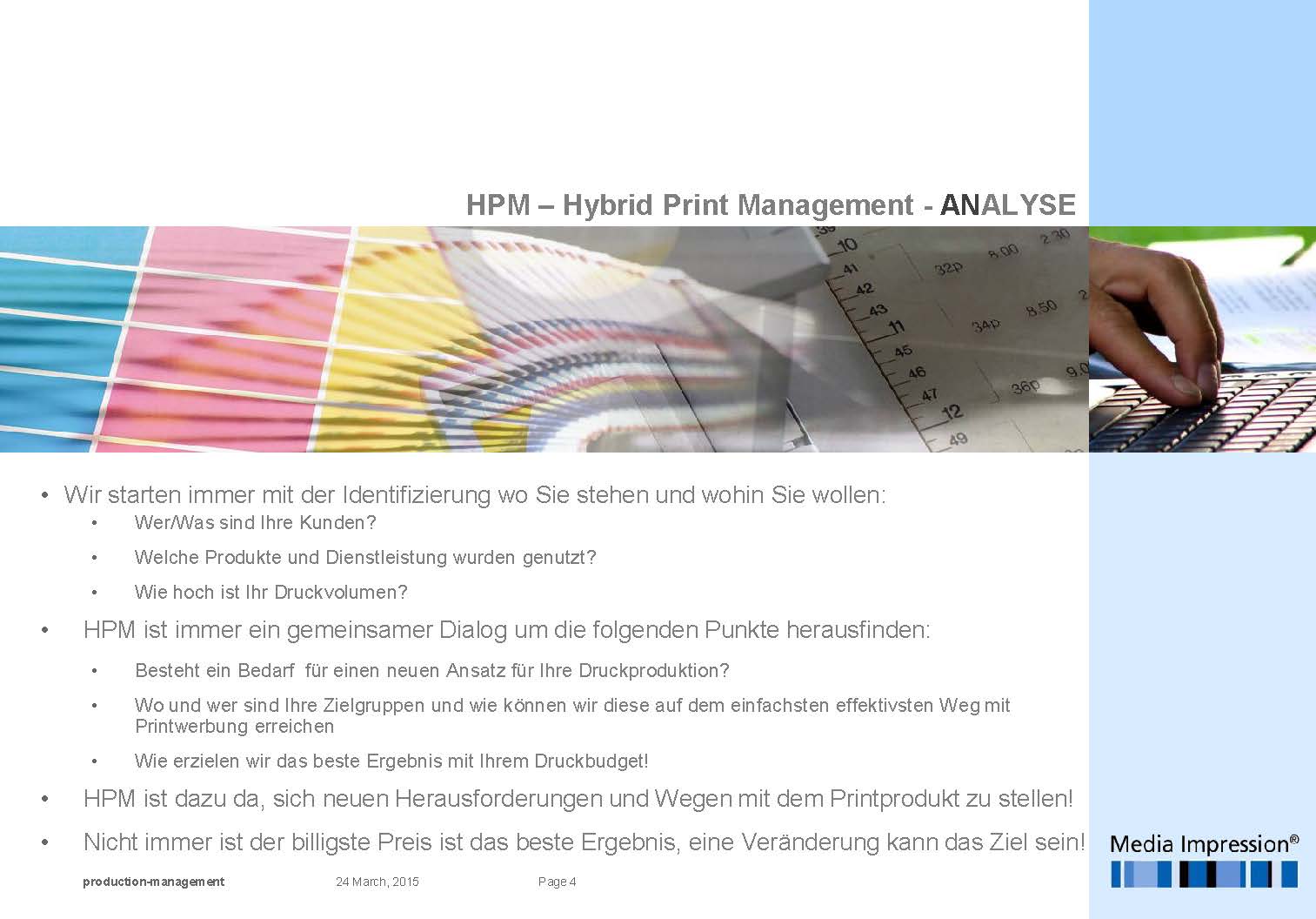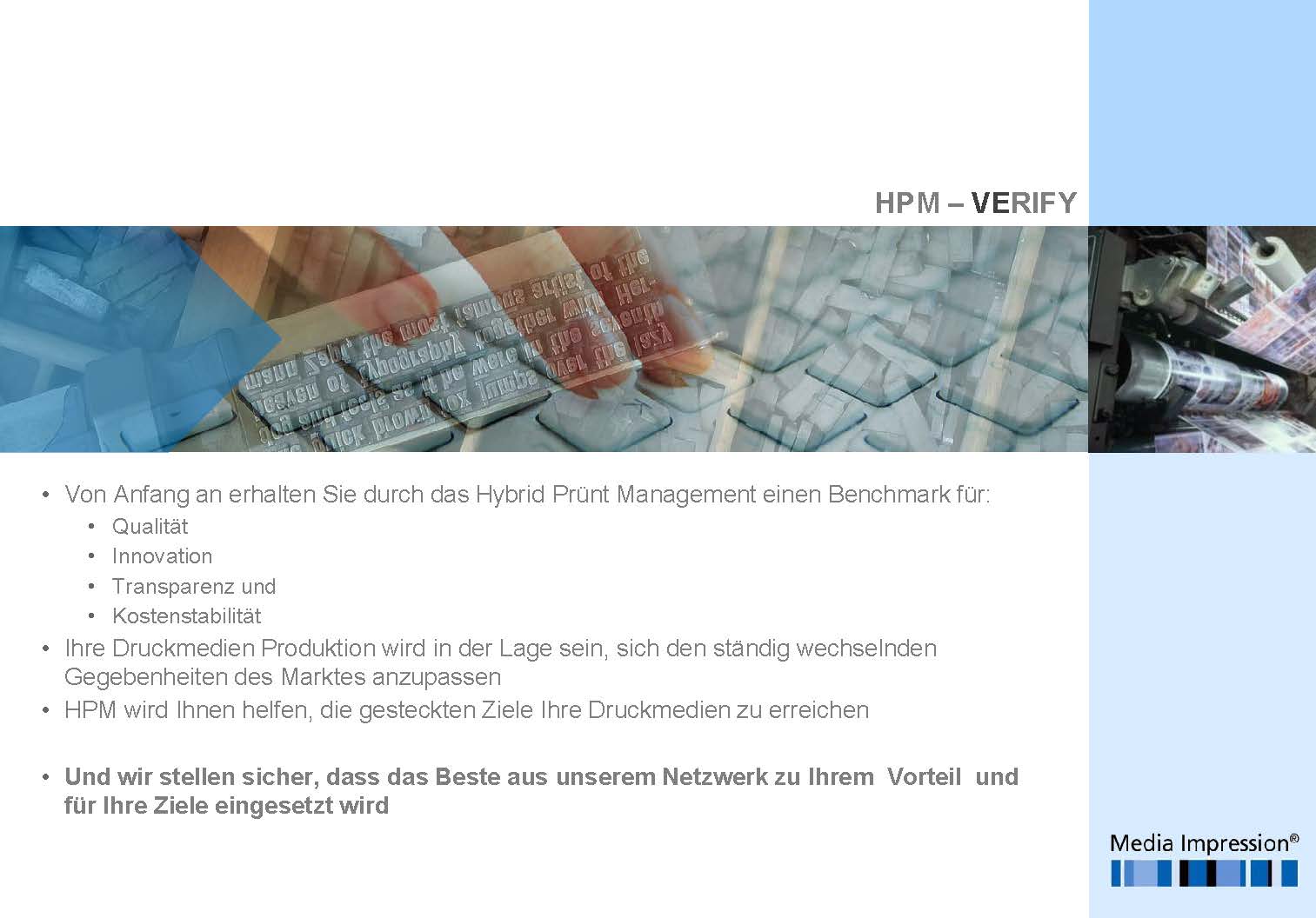 • HPM wird Ihnen helfen, die gesteckten Ziele Ihre Druckmedien zu erreichen