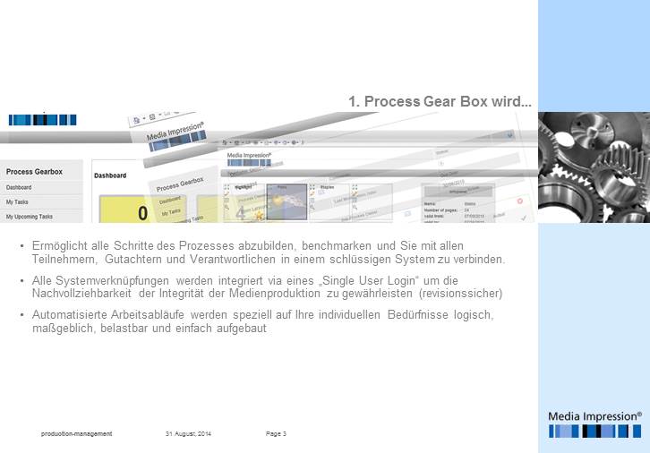 Nur gemeinsam ist es möglich, schonend und effizient den Weg in die neue Zukunft zu gehen ohne alles in Frage zu stellen, mit der Process Gear Box ist dies möglich.
