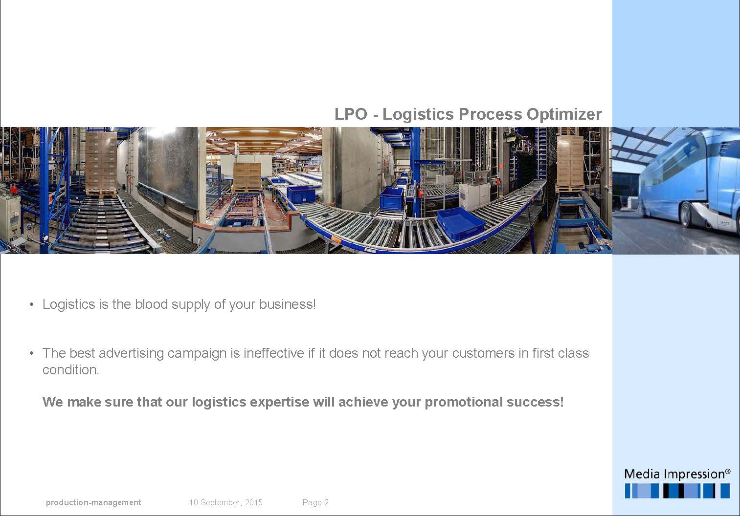 Logistics Process Optimization as an active element of the marketing communications supply chain!