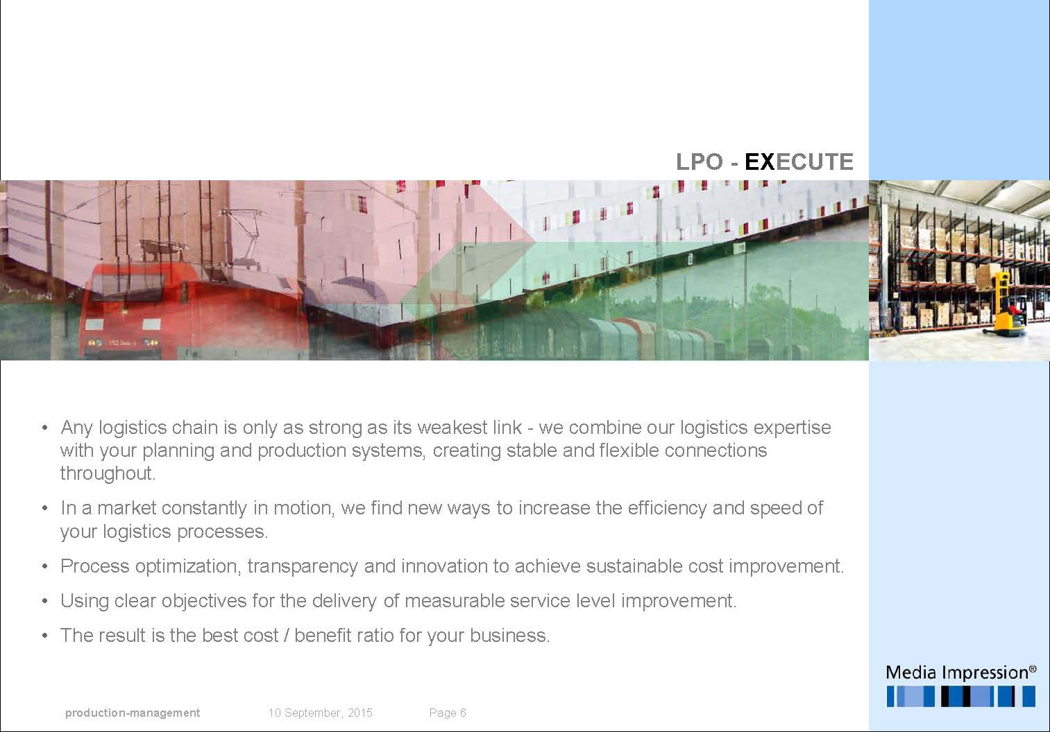 Process optimization, transparency and innovation lead to sustainable cost reductions. Optimal targets can then be set for the delivery service levels and provide clear performance improvement outcomes.